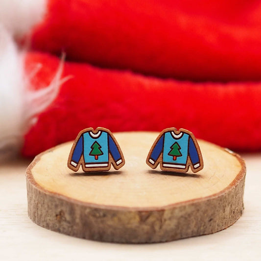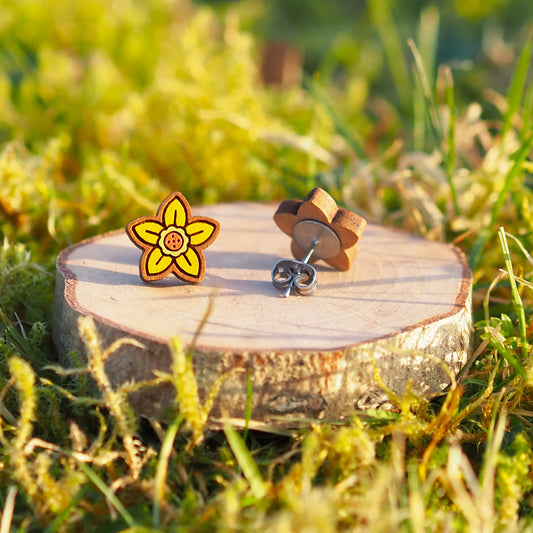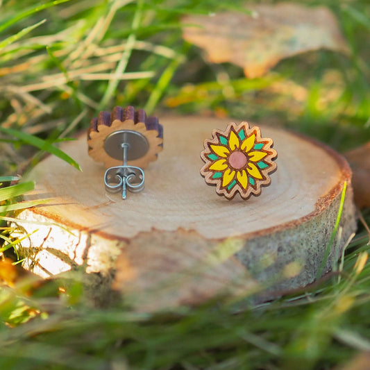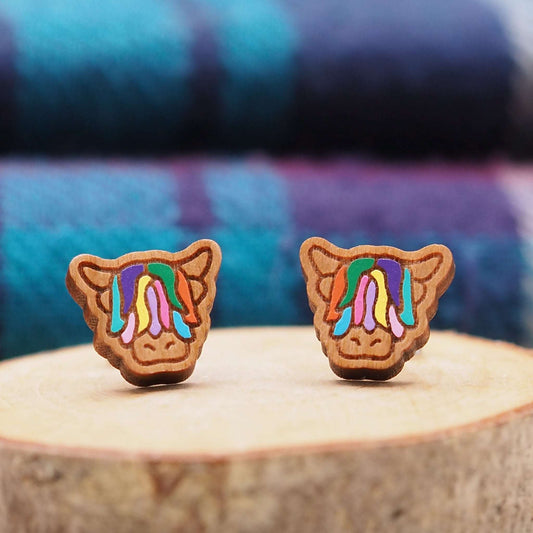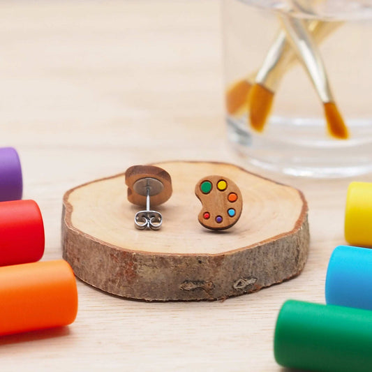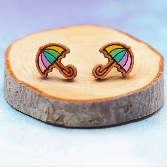 Pastel Rainbow Umbrella Wooden Stud Earrings